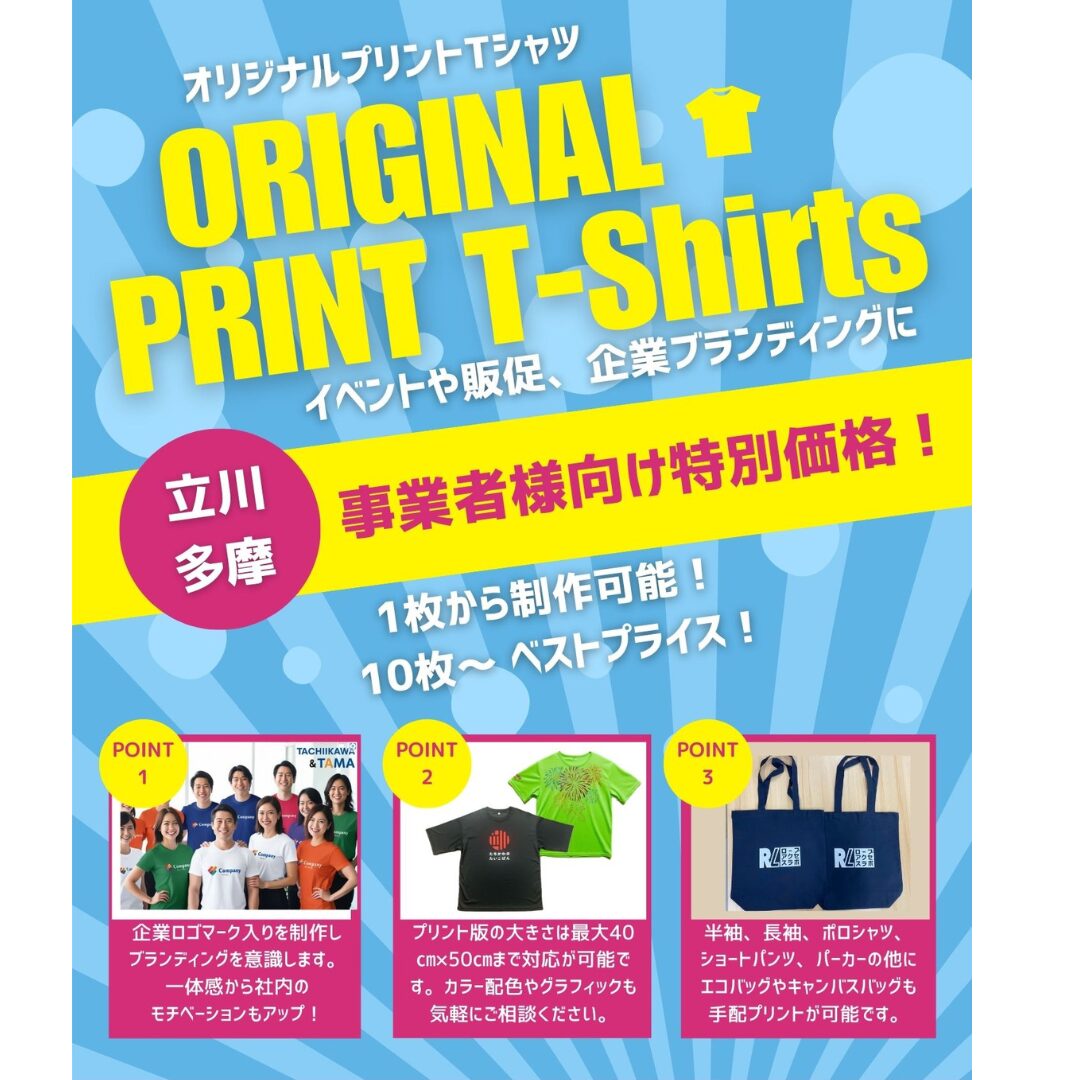Tシャツ、ポロシャツ、パーカー、トートバッグなど、オリジナルプリントで。 少ない数量で簡単にオリジナルプリント商品制作が可能です。