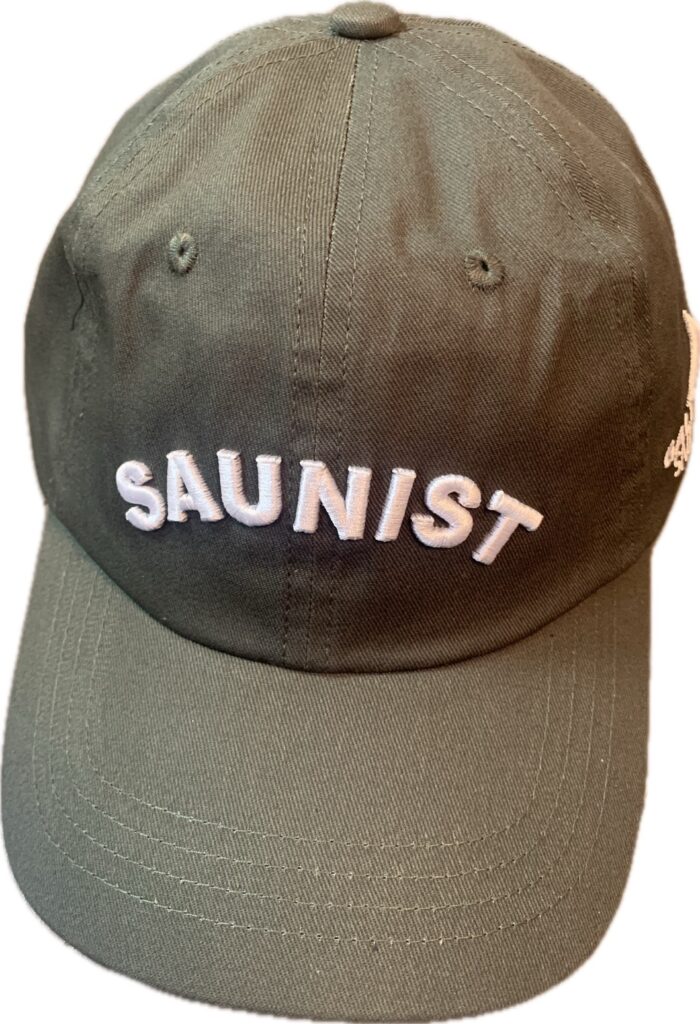 背中の「SAUNIST」ロゴは、エクリュ色のサガラ刺繍を使用。